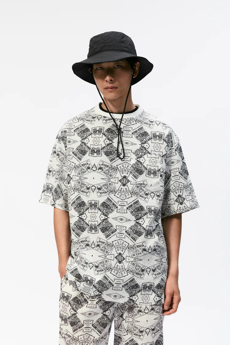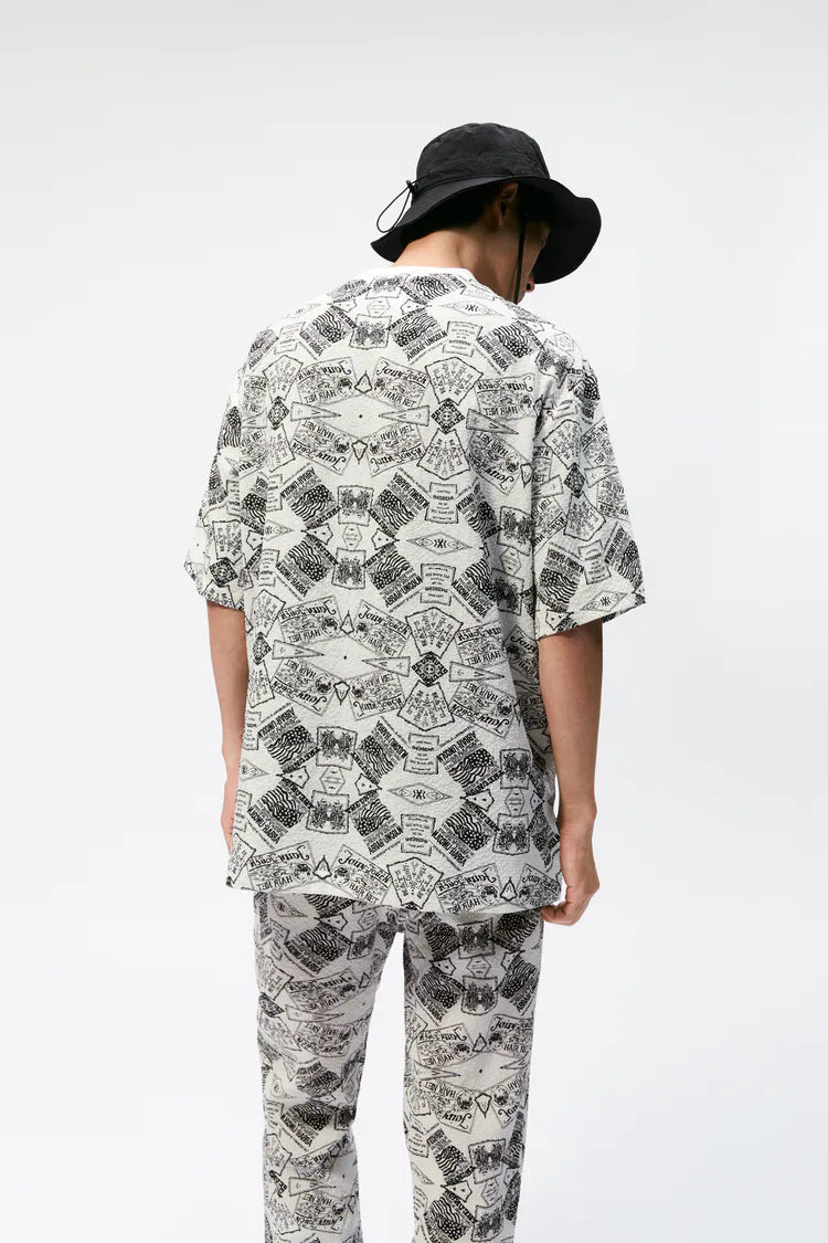 Printed seersucker T-Shirt style shirt. Featuring a chest pocket with a hem with side vents.